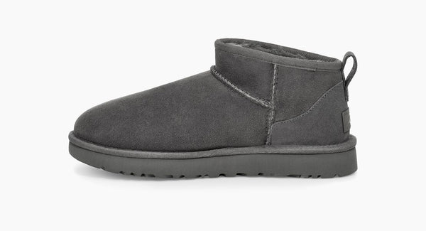 The Classic Ultra Mini updates our most iconic silhouette with a lower shaft height, adding easy on-off and enhanced versatility. Pre-treated to keep it looking better for longer, this Classic features everything you love about the original: signature sheepskin, ultra-soft UGGplush™ lining, and a flexible, lightweight sole. Wear with virtually anything – the styling options are endless.