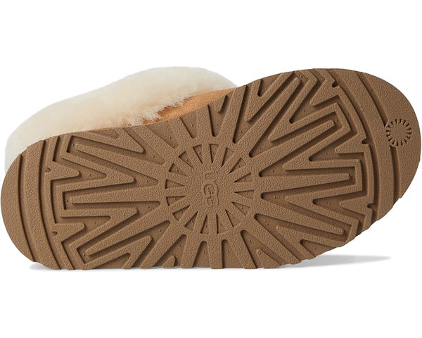 Love the Tazz but want even more UGG® coziness? Our Tazzelle is the one for you. This ultra-plush indoor-outdoor slipper features genuine suede and a lightweight 1" platform made from springy sugarcane EVA. Sheepskin lines the interior and continues onto the lush fixed cuff, so little ones can wear these with socks, or without. Make sure to snag a matching pair in our Women's collection for a coordinated family moment.