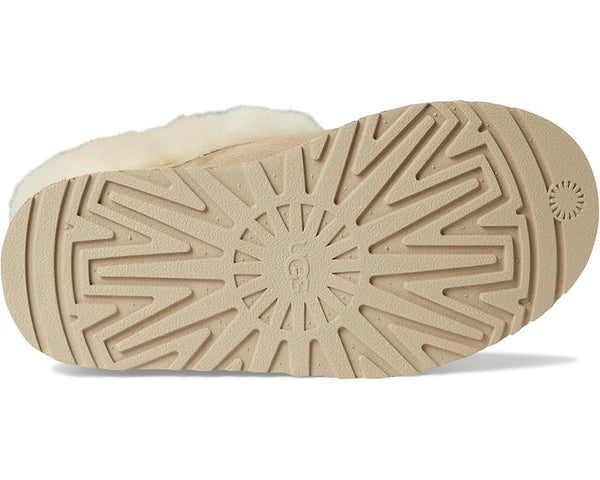 Love the Tazz but want even more UGG® coziness? Our Tazzelle is the one for you. This ultra-plush indoor-outdoor slipper features genuine suede and a lightweight 1" platform made from springy sugarcane EVA. Sheepskin lines the interior and continues onto the lush fixed cuff, so little ones can wear these with socks, or without. Make sure to snag a matching pair in our Women's collection for a coordinated family moment.